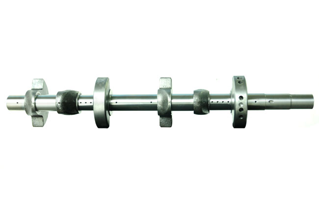 壓縮機(jī)曲軸是由碳素結(jié)構(gòu)鋼或球墨鑄鐵制成的,是引擎的主要旋轉(zhuǎn)機(jī)件,裝上連桿后,可承接連桿的上下運(yùn)動變成循環(huán)運(yùn)動。曲軸的旋轉(zhuǎn)是發(fā)動機(jī)的動力源,也是整個(gè)機(jī)械系統(tǒng)的源動力。壓縮機(jī)曲軸主軸頸被安裝在缸體上,連桿頸與連桿大頭孔連接,連桿小頭孔與汽缸活塞連接,是一個(gè)典型的曲柄滑塊機(jī)構(gòu)。主軸頸與連桿軸頸的徑向磨損主要呈橢圓形,且其磨損部位相互對應(yīng);而連桿軸頸的磨損處也是靠近主軸頸一側(cè)。曲軸軸頸沿軸向還有錐形磨損。軸頸的橢圓形磨損是由于作用于軸頸上的力沿圓周方向分布不均勻引起的。發(fā)動機(jī)工作時(shí),連桿軸頸所受的綜合作用力始終作用在連桿軸頸的內(nèi)側(cè),方向沿曲軸半徑向外,造成連桿軸頸內(nèi)側(cè)磨損大,形成橢圓形。