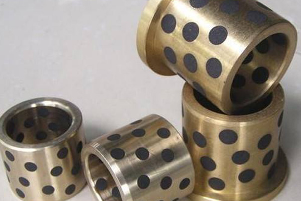 鑲嵌式固體潤滑軸承突破了一般軸承依靠油膜潤滑的局限性。銅基鑲嵌式固體潤滑軸承在使用過程中,通過摩擦熱使固體潤滑與軸摩擦,形成油、粉末并存潤滑的條件,既保護(hù)軸不磨損,又使固體潤滑特性較好。它的硬度比一般銅套高。